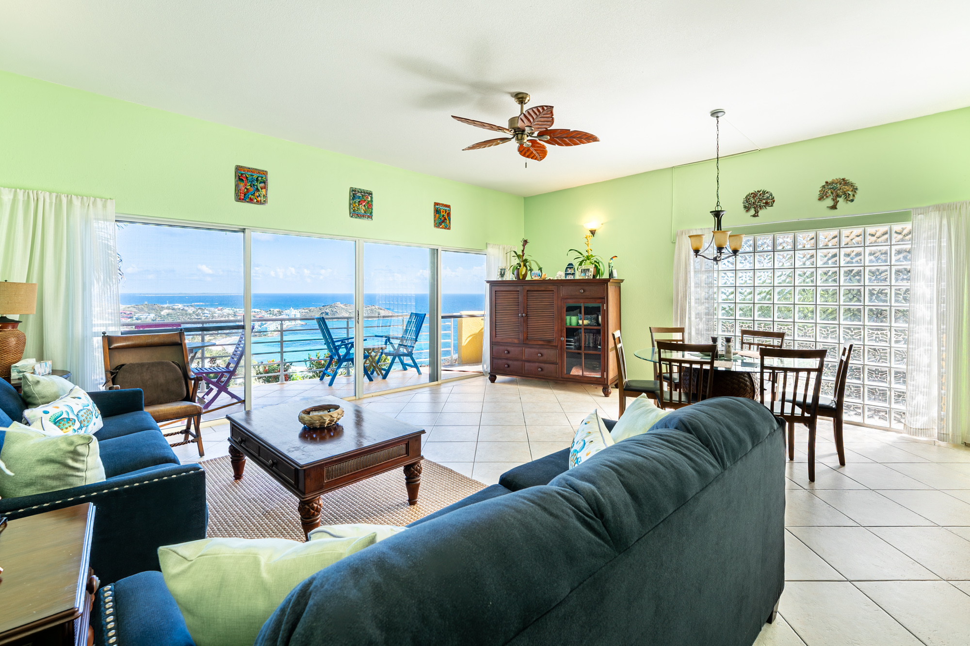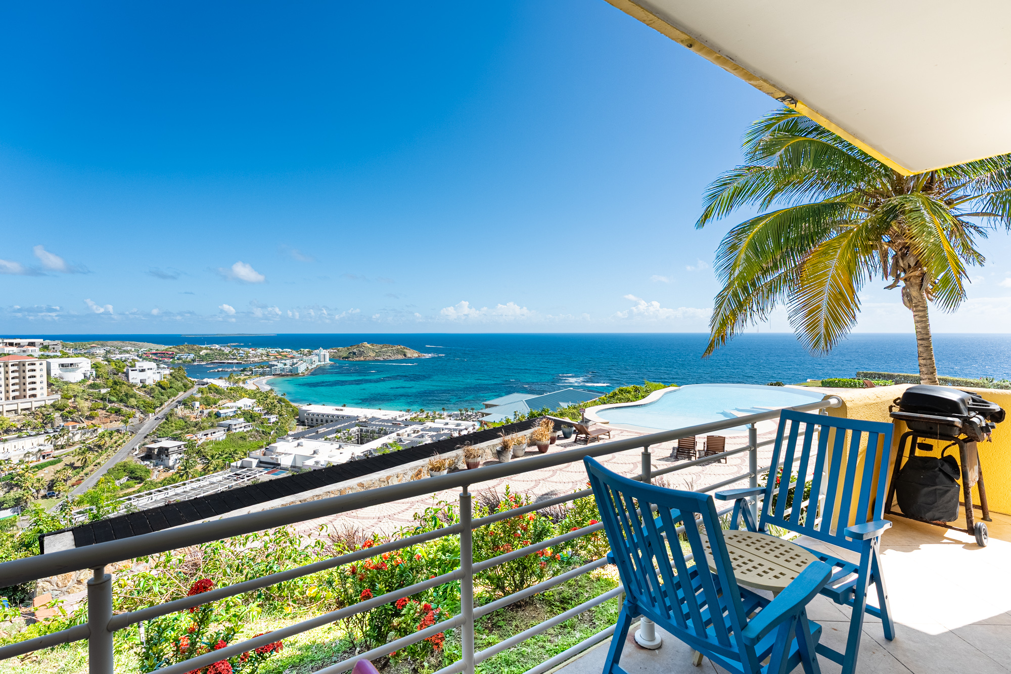 This condo is located in Dawn Beach Estates, one of the islands most prestigious gated communities offering 24/7 security and access to Dawn Beach. The community is well known for its tranquility and beauty, you are also only a few minutes away from the french side which has incredible bakeries and restaurants. An added bonus of this area is the light traffic, allowing for a smooth and relaxed drive home. This is a large condo with 3 bedrooms and 2.5 bathrooms and an incredible view overlooking the ocean. This property is perfect for owners looking for a great rental property and owners looking for their own vacation property.