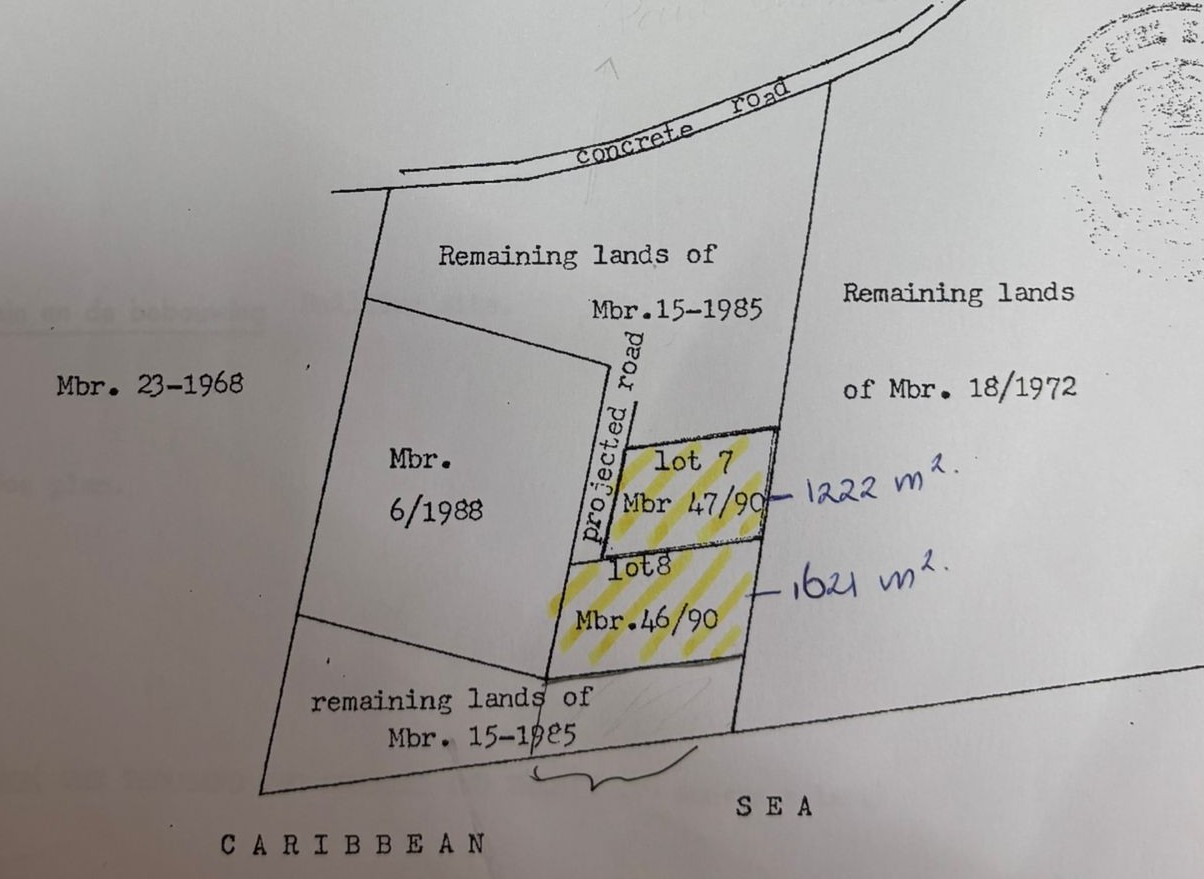 The Land: The undeveloped property is in White Wall on Statia Island and measures 2,843 square meters. The property consists of two adjoining lots with certificates of admeasurement 46/1990 and 47/1990. The White Wall property offers ocean views, mountain views, St Kitts vistas and beautiful sunsets. The land is near Morgan’s Estate, just a little past Statia Lodge, and has easy access to the main road.