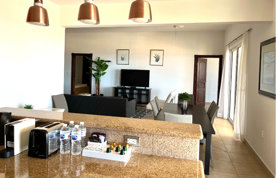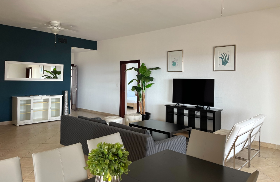 Experience elevated Caribbean living in this spacious four-bedroom, four-bathroom condominium located in the prestigious Porto Cupecoy marina community. This beautifully designed residence offers generous living spaces and an expansive private terrace with stunning ocean views, creating the perfect environment to relax, entertain, and enjoy the island’s tropical lifestyle. The open layout seamlessly connects the interior living and dining areas with the outdoor terrace, allowing residents and guests to fully appreciate the refreshing sea breezes and picturesque surroundings. Each of the four bedrooms is thoughtfully designed to provide comfort and privacy, making this property ideal for families, groups, or guests enjoying an extended stay in the Caribbean.