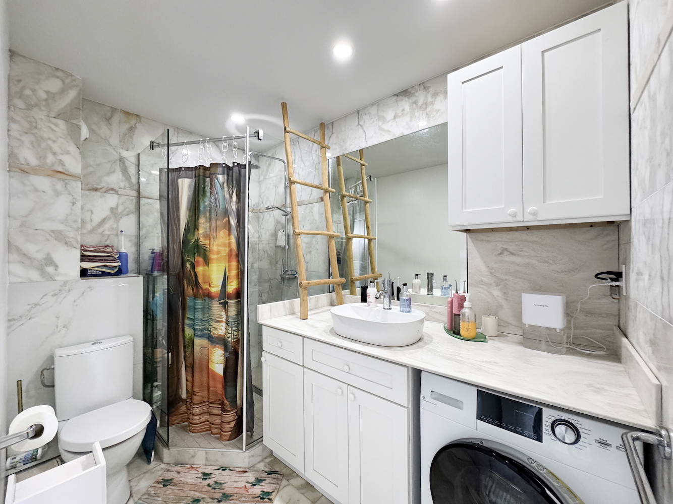 Unlike standard one-bedroom units, this condo features a fully renovated ensuite bathroom along with an additional guest half-bath—significantly enhancing both comfort and rental appeal.
