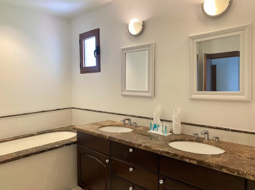 Each of the three bedrooms is well-proportioned and designed with comfort and privacy in mind, complemented by four bathrooms that provide added convenience for families and visiting guests. The layout is particularly attractive for holiday rentals, comfortably accommodating multiple guests while maintaining a sense of space and privacy—an important factor for maximizing rental appeal. The bright, open design and seamless indoor-outdoor living further enhance the experience guests seek when vacationing in the Caribbean.